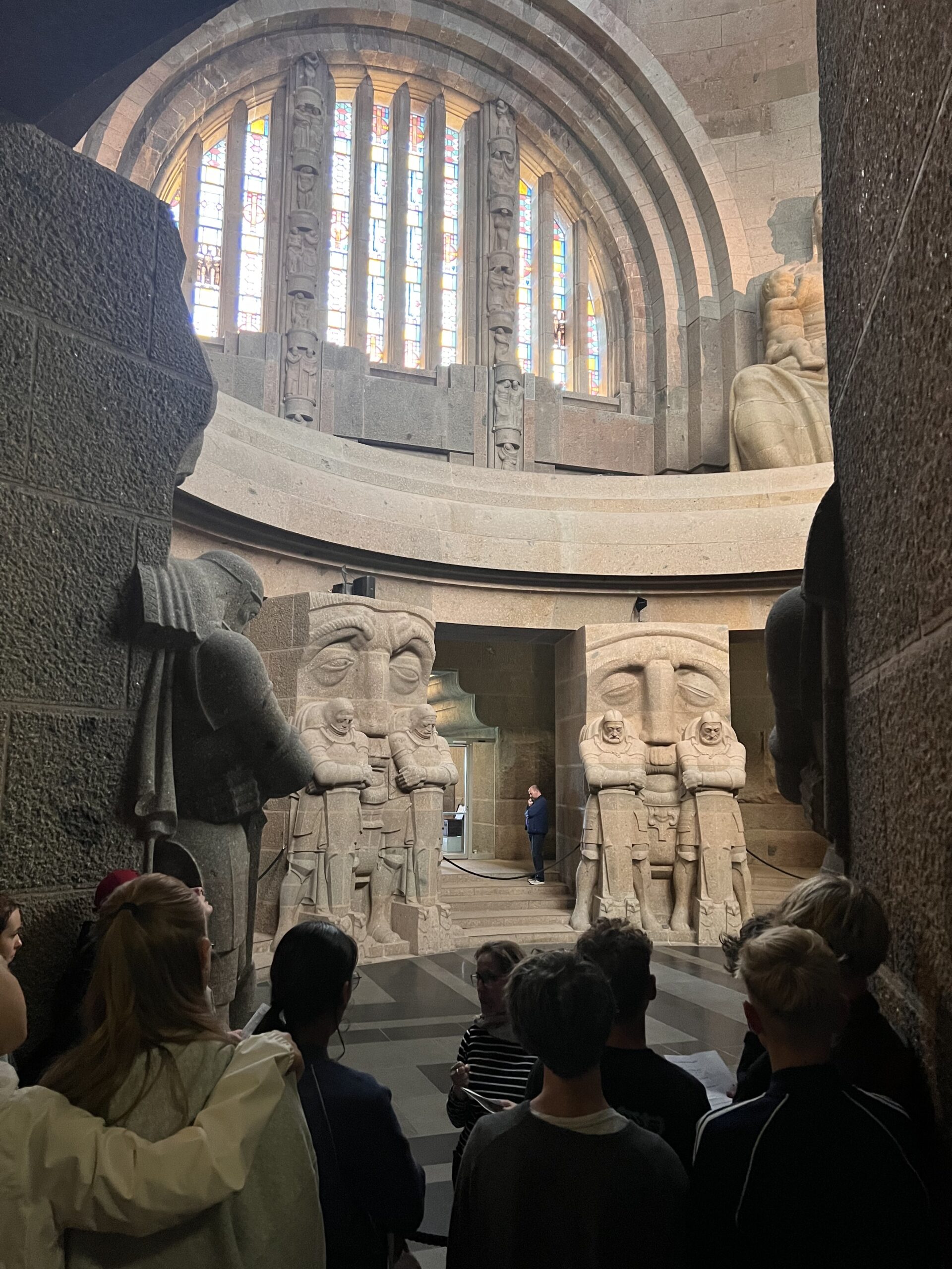 Im Rahmen der Führung blickten wir in das Innere des Denkmals und erfuhren viel über dessen Konzeption, Finanzierung und Erbauung. Und für ganz sportliche und mutige ging es die 365 Stufen bis ganz hinauf auf das Denkmal, von wo man direkt auf unsere Schule blicken konnte.