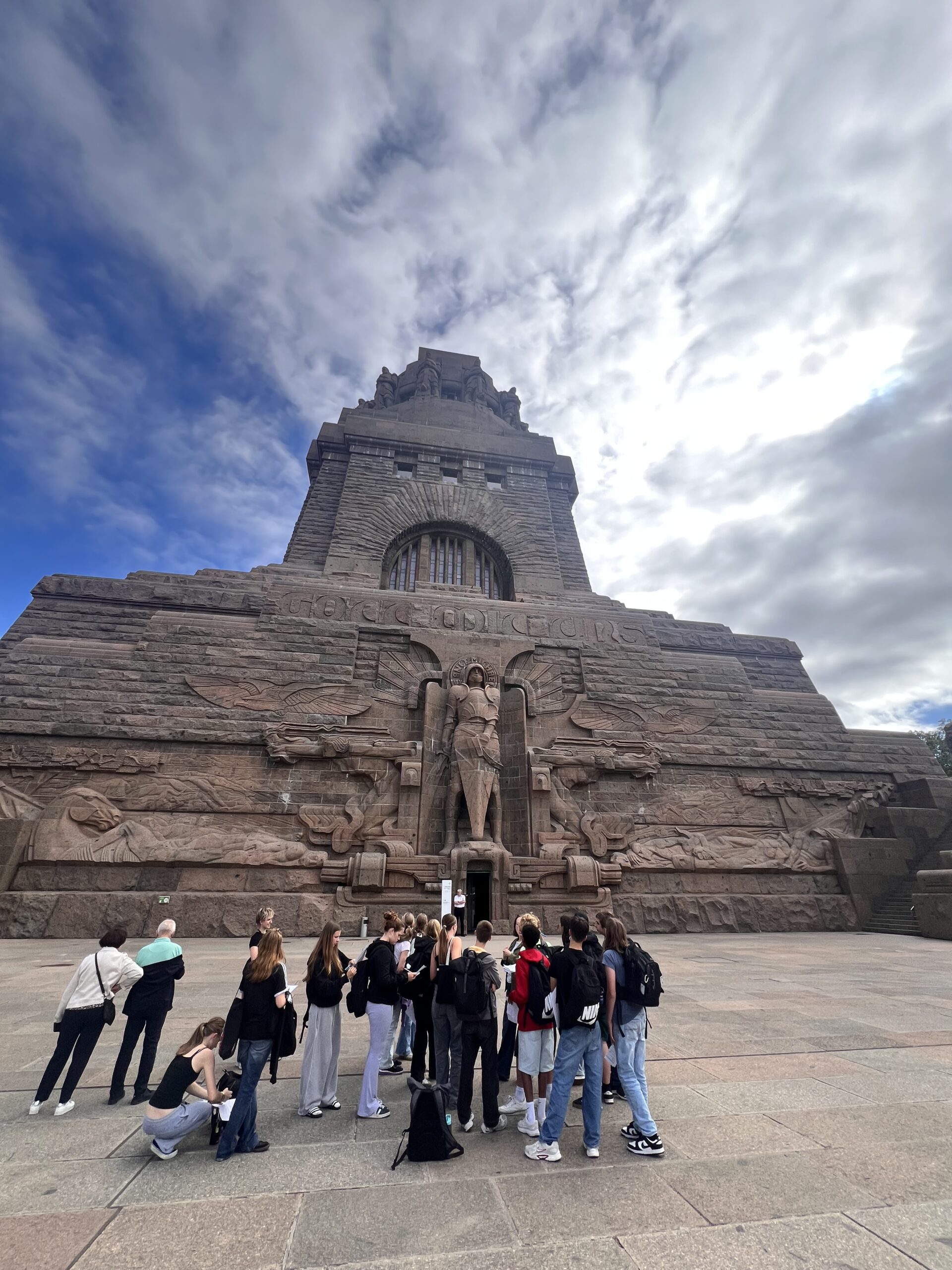 Es ist das Wahrzeichen Leipzigs und wir sehen es eigentlich täglich, zumindest aus der Ferne. Das Völkerschlachtdenkmal. Aber wie es unter und auf der Steinhaut aussieht, wie es erbaut und finanziert wurde, wissen die wenigsten. Grund genug, das Denkmal im Rahmen des Geschichtsunterrichts der Klassenstufe 8 genau unter die Lupe zu nehmen. Nachdem die Völkerschlacht und die Napoleonischen Kriege Unterrichtsstoff der letzten Wochen waren, stand Mitte September der Besuch des Denkmals auf dem Stundenplan.