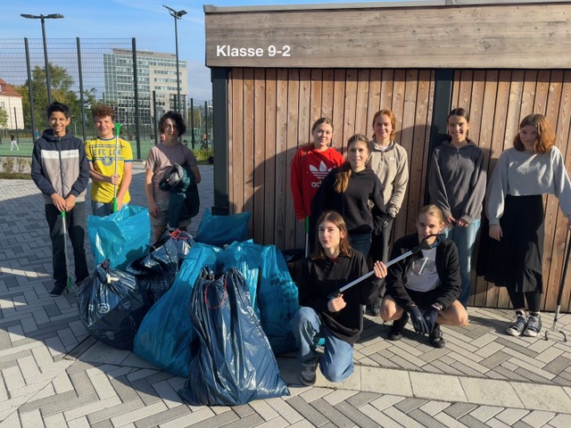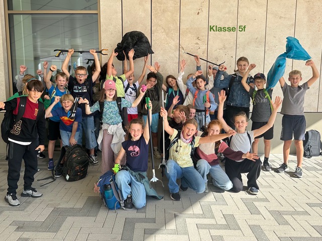 Ein Höhepunkt des Tages war die Müllsammelaktion, bei der die Klassen in ihr umliegendes Wohngebiet und in die Parkanlagen gingen, um aktiv Müll zu sammeln. Anlässlich des „World Cleanup Days“ zeigten die Schülerinnen und Schüler großes Engagement und sammelten fleißig Abfälle.