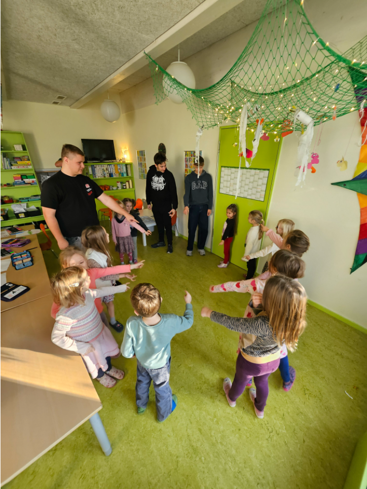 Sobald die anfängliche Scheu verflogen war, wurde gemeinsam getanzt, gesungen und gemalt – die Kinder wollten ihre Gäste gar nicht mehr gehen lassen. Anschließend gab es im Garten noch eine Runde Fußball, und viele neugierige Fragen wurden gestellt und beantwortet.