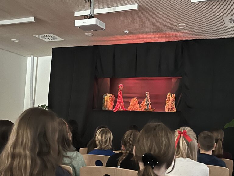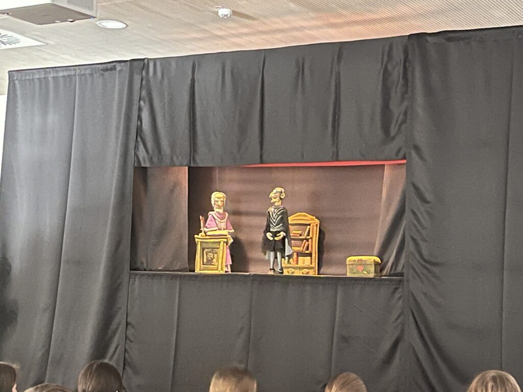 Die gesamte Klassenstufe 6 durfte in der Aula das Marionettenspiel „Dr. Faust“ mit ihm erleben. Es war sehr interessant und beeindruckend, mit anzuschauen, wie er alle Marionetten alleine zum Spielen und Sprechen brachte. Zugleich war es auch recht amüsant trotz der insgesamt eher dunklen Geschichte. Uns hat die Theateraufführung gut gefallen und wir denken, es wäre auch für weitere sechste Klassen empfehlenswert.