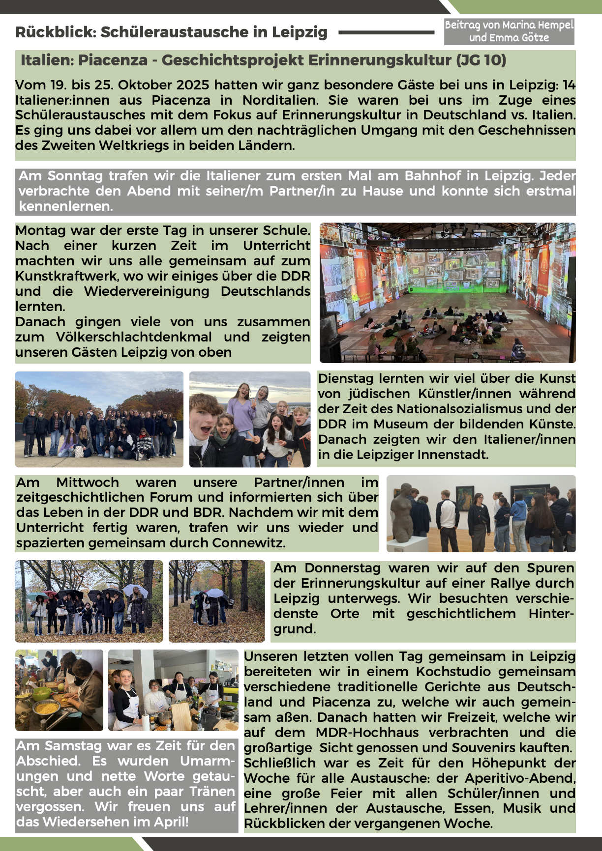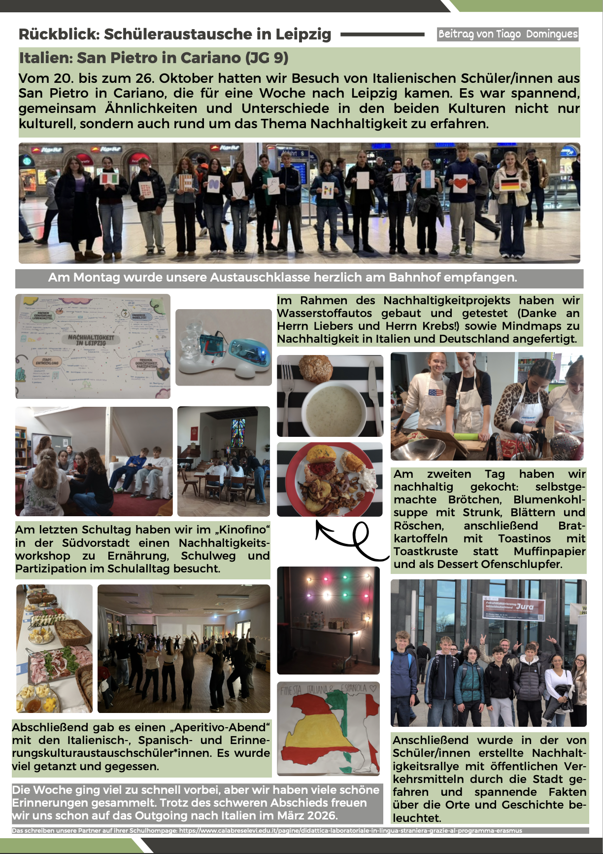 Es hat uns allen viel Spaß gemacht und wir danken unseren Lehrkräften und Margherita Siegmund (Italienisch Dozentin/Lehrerin der Universität Leipzig), das sie dieses Erlebnis ermöglicht haben.